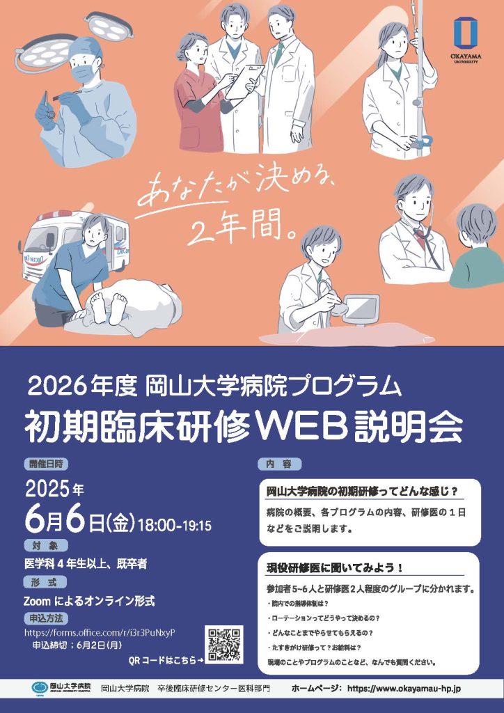 2026年度岡山大学病院プログラム 初期臨床研修WEB説明会を開催いたします。